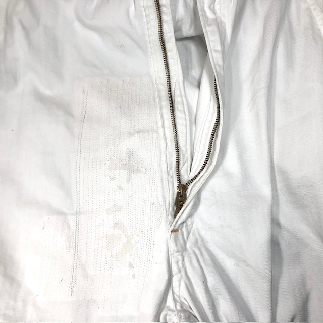 本日の修理品/キャントバステム オールインワン 2025年10月04日 当店がビンテージを扱っていた頃からのお客様の修理依頼。 キャントバステム(CAN'T BUST EM)は、半世紀以上前に消滅したワークウエアブランド。 当店が扱っていた30年ほど前は安価なものでしたが、現在は高額取引されています。 このオールインワンもせいぜい数千円程度でしたが、今の市場価値は10倍くらいになっているんじゃないでしょうか。 «前 次»