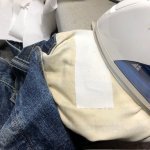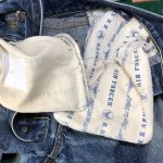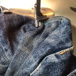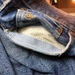 本日の修理品/トイズマッコイ 大戦モデルジーンズ 2025年10月08日 まずは左右前ポケット口の補修。 プリントスレキの袋布が擦り切れて穴が開いているので、内側から芯地で補修。 袋布底も抜けていますが、ここは縁を1,5センチほど縫い込んで始末します。 ポケットが少し浅くなりますが、これでモノが落ちることは無くなります。 «前 次»