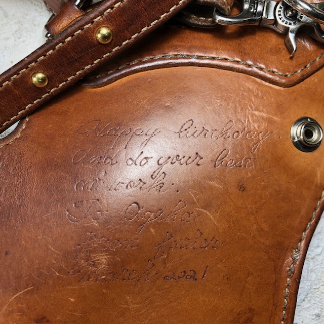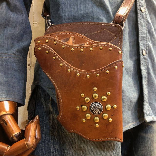 上蓋とストラップに追加のスタッズを打ち込み、中央部にファニー製ビクターコンチョを装着。