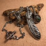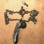 シルバーネックレスリメイク 2025年11月03日 お客様のご要望で二連ペンダントの小さなクラスプ(スプリング留め具)を、スターリングシルバー製のマンテル(リングとTバーの留め具)に取り替え。 Tバーがギリギリ通る大きさのOリングに通すと、チェーンとペンダントヘッドの重みで固定されるという単純なもの。 慣れれば小さなクラスプより留めやすいのではないでしょうか。 デザイン的にも、武骨なペンダントヘッドにマッチしています。 «前 次»