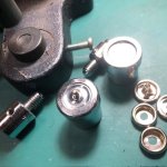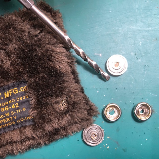 本日の修理品/A-DIRTY ネックウォーマー 2025年11月22日 今日の深夜からビンテージハーレーで温泉地へ向かうお客様からの特急依頼。 ネックウォーマーのスナップボタンが留められないので見て欲しいとのこと。確認すると、メス側(上側)の軸が傾いた状態で取り付けられ、中心にバリが出たままになっています。 治具を使えばこんなことにはならないので、ハンマーで手打ちしているような仕上がり。 スナップボタンは規格が様々で、合わなければ上下共交換しなければなりませんが、同一のものが在庫でありましたので、メス側のみ軸を削って外し、打ち直しを行いました。 «前 次»