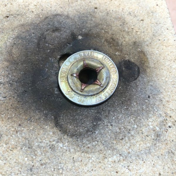 コインリング制作 2025年09月18日 ファニーオリジナルのハーフダラーコンチョをコインリングに加工する試み。 中心部に銀の台座とブラスの星がロウ付けされ、分厚くなっていますが、そこに治具を使って穴開けを行います。 焼き鈍しと成型を繰り返してリングの形に…。 «前 次» 店長日記