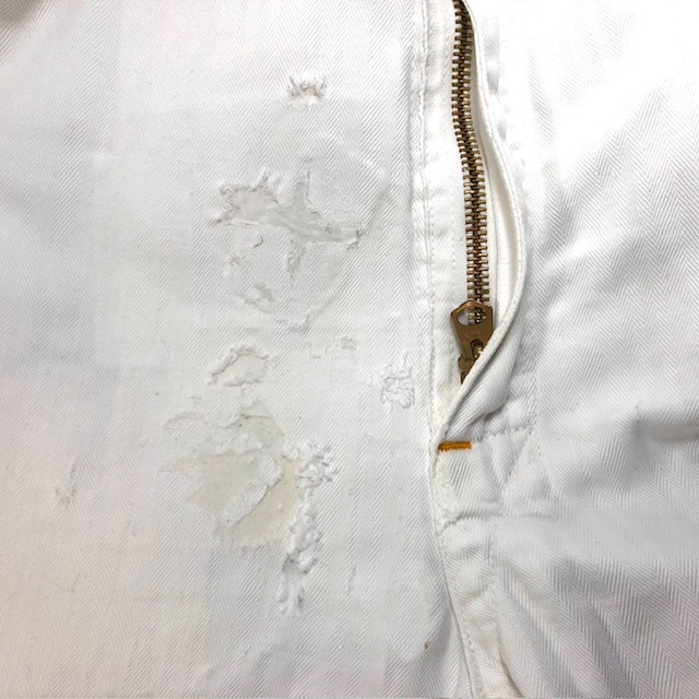 本日の修理品/キャントバステム オールインワン 2025年10月04日 当店がビンテージを扱っていた頃からのお客様の修理依頼。 キャントバステム(CAN'T BUST EM)は、半世紀以上前に消滅したワークウエアブランド。 当店が扱っていた30年ほど前は安価なものでしたが、現在は高額取引されています。 このオールインワンもせいぜい数千円程度でしたが、今の市場価値は10倍くらいになっているんじゃないでしょうか。 «前 次» 店長日記
