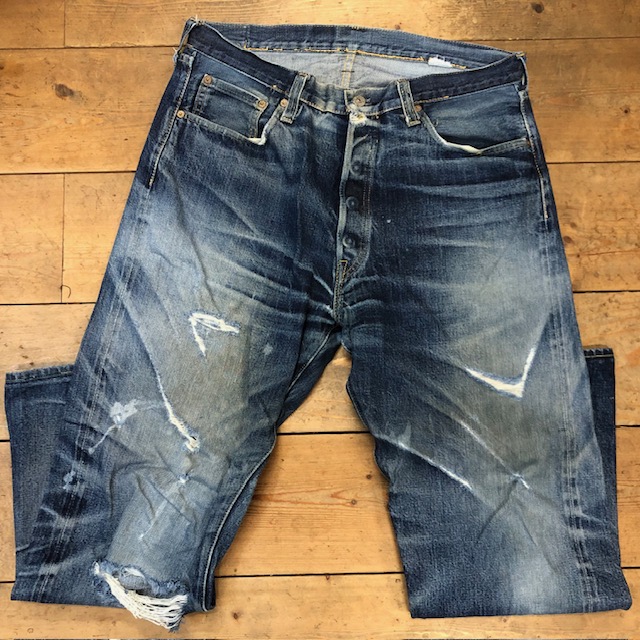 本日の修理品/シュガーケーン スタンダードジーンズ 2025年10月25日 シュガーケーンの1947モデル。 ガテン系の仕事でお使いで、1年足らずでこの状態。 同型を新調されましたが、これはこれで直して穿きたいとの事。 左右の膝周辺が激しく傷んでいるので、カットオフしてショートパンツにしてはとご提案しましたが、短パンは穿かないので、工賃がかかってもいいから直したいということでした。 ということで、リメイク風に継ぎ当てだらけになりますが、センス良く仕上げたいと思います。 なかなか長丁場になりそうです。 «前 次» 店長日記