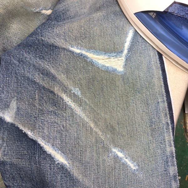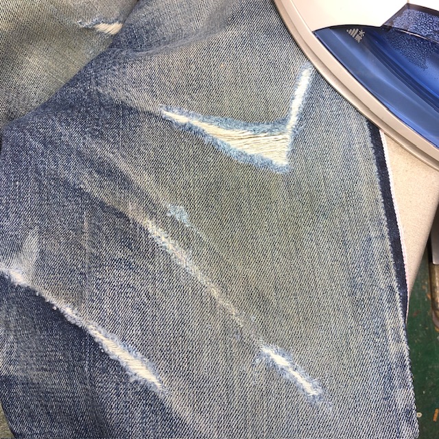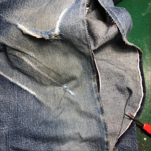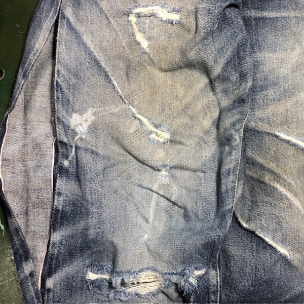 本日の修理品/シュガーケーン スタンダードジーンズ 2025年10月27日 ボロボロ状態のシュガーケーン1947の修理開始。 両膝全体にタタキを入れる必要がありますが、まずはプレスで伸びきった穴周辺の生地を追い込んで、出来るだけ平面に戻してやる必要があります。 開いた穴を放置して穿き続けていると、穴も大きくなりますが、緯糸経糸が伸びてしまい、そのままではミシン作業がスムーズにいかないのです。 «前 次» 店長日記