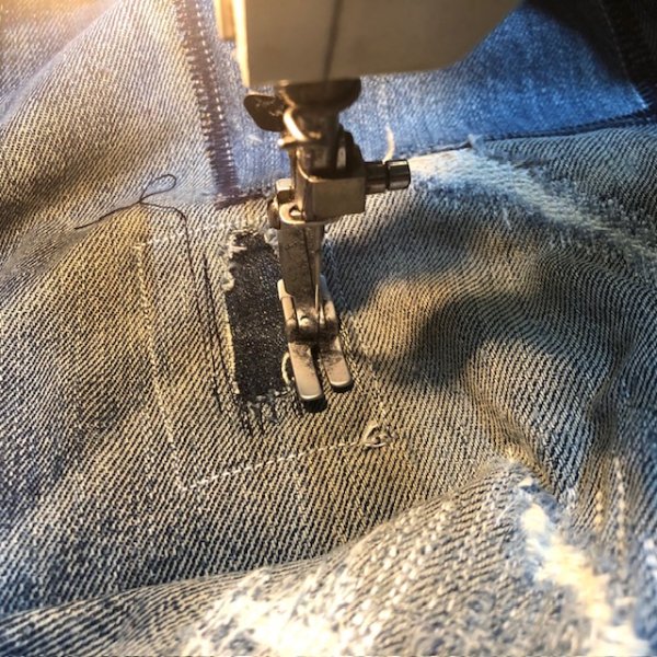 本日の修理品/シュガーケーン スタンダードジーンズ 2025年11月02日 シュガーケーン1947の修理続き。 裁ち残りのデニム生地を使ってパッチワークを行いますが、地縫いミシンの他、職業用のジグザグミシンを使って縁を留めていきます。 «前 次» 店長日記