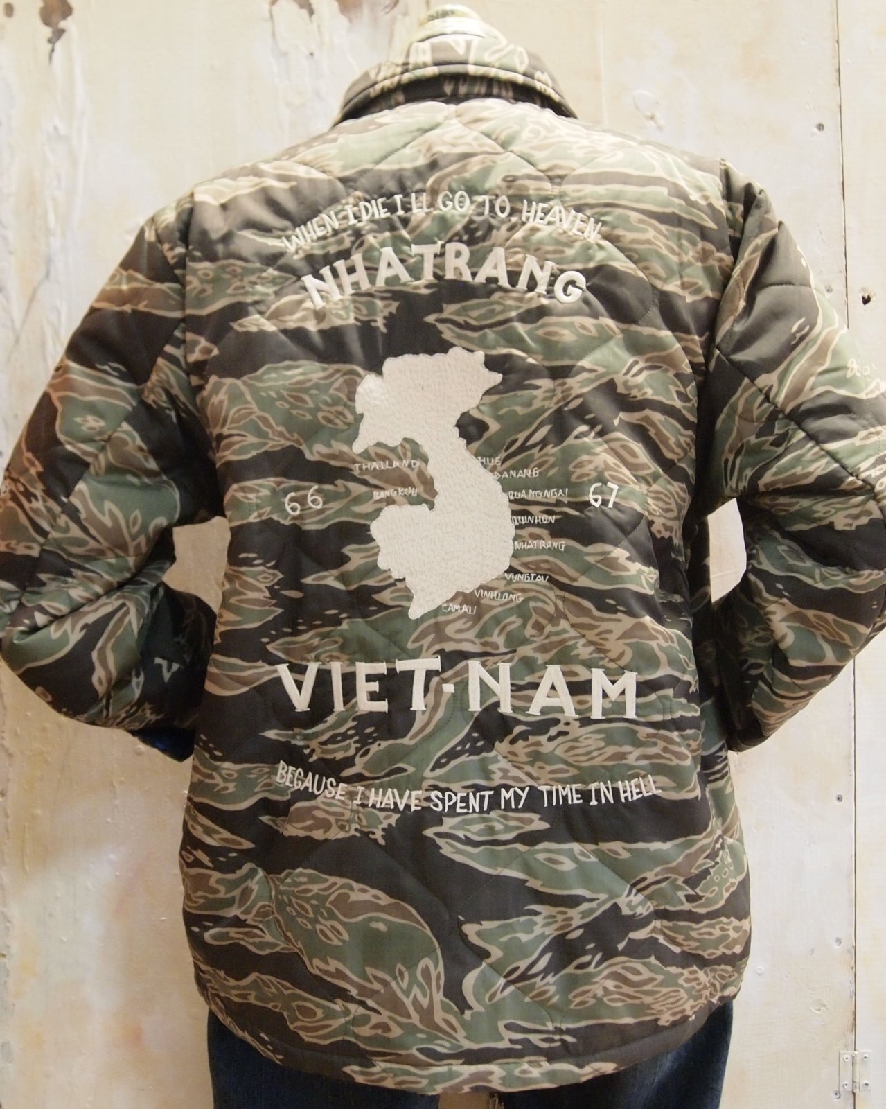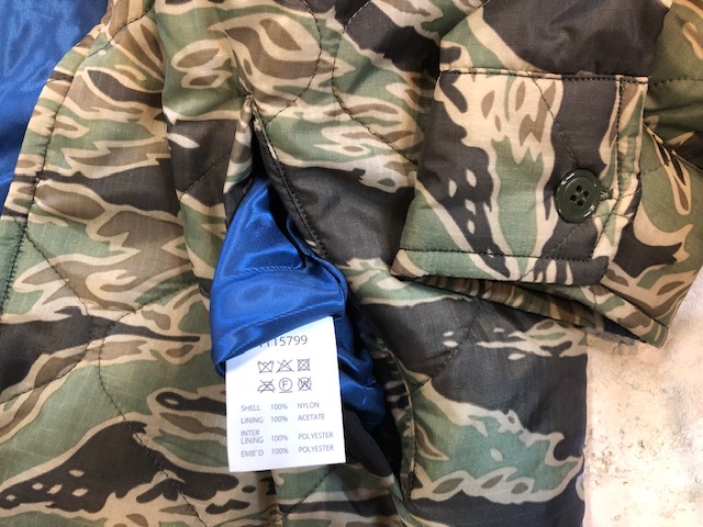 テーラー東洋 ベトジャン リップストップ カモフラージュ [TT15799-198] テーラー東洋 ベトジャン リップストップ カモフラージュ [TT15799-198] 販売価格: 42,900円(税込) サイズ 在庫 M × L 1 販売価格: 42,900円(税込) 数量: バリエーションを選択してください。 返品特約に関する重要事項 お問い合わせ ベトジャンはベトナム戦争時のスーベニア(お土産品)ジャケット。ナイロンリップストップの表地、裏地はアセテート。 *リバーシブルではありません。 サイズM/着丈70センチ、袖丈62センチ、肩幅46センチ、身幅60センチ サイズL/着丈72センチ、袖丈64センチ、肩幅47センチ、身幅63センチ 他の写真